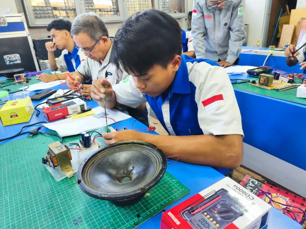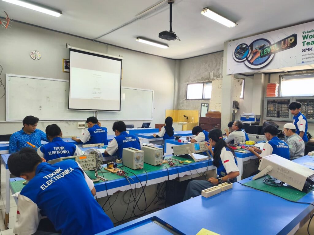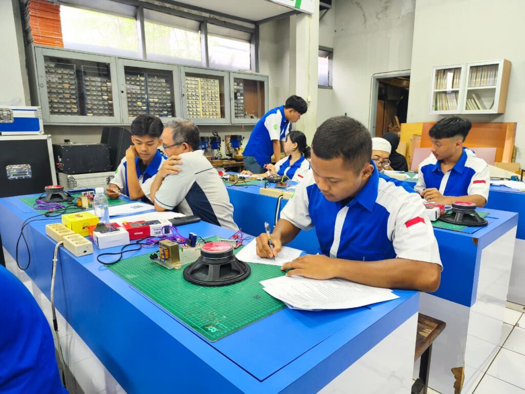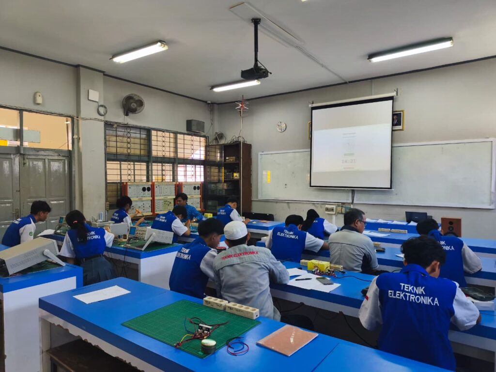 Untuk penguji eksternal, kegiatan UKK kali ini menghadirkan Dedi Supriatna yang memberikan penilaian langsung terhadap kemampuan para peserta. Selain itu, seluruh guru Program Keahlian Teknik Elektro / Teknik Audio Video juga ikut terlibat sebagai penguji internal dalam mendampingi dan menilai proses pelaksanaan ujian.